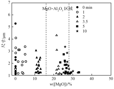 摘 要:爐外精煉是煉鋼流程中控制鋼中非金屬夾雜物的重要轉折點,作為整個精煉過程中與鋼液實時接觸的鋼包內襯用耐火材料,因為高溫物理化學反應易向鋼中引入夾雜物,導致精煉效果達不到預期。通過對典型現役鋼包內襯用耐火材料與不同脫氧鋼之間的界面反應歸納發現,鋼包內襯用耐火材料會對鋼中夾雜物的形貌、成分和理化性能產生影響,既可向鋼中引入夾雜物,也能夠吸附去除夾雜物。提出未來鋼包內襯用耐火材料應被賦予更多凈化鋼液等功能指標的發展方向。鋼鐵行業是體現一個國家整體工業發展水平的重要標志,對保障國家重大工程建設、提升裝備制造水平、促進節能減排和相關應用領域技術升級具有重要意義。近年來,國內鋼鐵企業加大研發投入和技術改造力度,盡管實現了鋼鐵產量的快速增長和品種的迅速豐富,但是一些高端特殊鋼如高鐵用軸承鋼和航空飛機起落架用鋼仍未擺脫依賴進口的局面。為助力解決上述問題,2019年工信部將高檔軸承鋼等40種高品質鋼納入《重點新材料首批次應用示范指導目錄》中,對相關材料發展和應用進行傾斜支持。這些材料性能突破的關鍵在于精確控制非金屬夾雜物。當夾雜物以不利的尺寸、形態和分布特征存在時,會破壞基體的連續性和完整性,嚴重影響鋼材質量和使用性能[1,2,3,4,5]。關于夾雜物的去除問題,眾多科研人員圍繞如何提高夾雜物去除率開展了大量研究工作,開發出超低氧冶煉和夾雜物塑性化等先進冶煉技術和裝備[6,7,8,9,10,11,12,13,14,15,16,17]。研究發現[18],這些技術和裝備的革新可以有效減少夾雜物的數量和降低夾雜物的危害,但仍無法實現對所有夾雜物尺寸和分布的精確控制。這說明,對于流程長、環節多的高端鋼來講,夾雜物的精準控制需要多方面的協同貢獻。進一步對夾雜物來源的跟蹤研究發現,在整個冶煉中與鋼液實時接觸的耐火材料是影響鋼中夾雜物尺寸和分布的主要因素之一。隨著爐外精煉和合金化工藝在煉鋼過程中所占比重越來越高,鋼包工作襯用耐火材料的重要性愈發凸顯,其對鋼中夾雜物的影響同樣不可忽視。中國鋼包內襯用耐火材料隨著爐外精煉技術的發展不斷改進[19]。為了滿足不同時期內的精煉需求,近幾十年來冶金和材料科研技術工作者不斷更新設計理念并相繼開發出多種鋼包內襯用耐火材料體系[20,21,22,23],包括高鋁系耐火材料、碳系復合耐火材料、鎂鋁系無碳耐火材料和CaO系耐火材料等。這些鋼包內襯用耐火材料在爐外精煉的發展史上均扮演過重要的角色[24,25,26],其中基于天然鋁礬土合成的高鋁系耐火材料由于較低的使用壽命和較差的高溫服役性能,例如抗熱震性差、掛渣嚴重和抗渣侵能力弱等逐漸退出精煉鋼包內襯的歷史舞臺[27,28,29];其余耐火材料目前雖被使用,但受其材料組成成分和自身結構影響仍均存在一些問題,如碳系復合耐火材料向鋼中的增碳行為[30]、鎂鋁系無碳耐火材料的抗熱震性問題、CaO系耐火材料的水化問題等[31,32],這些問題會導致精煉工藝達不到預期效果。此外,現役耐火材料在精煉過程中與鋼液之間的界面反應也會對鋼中的非金屬夾雜物造成影響。關于鋼包內襯用耐火材料對鋼中非金屬夾雜物和鋼材性能的影響已有較多報道,結果表明:不同材質的耐火材料與鋼液的界面反應機制不同,對鋼中夾雜物形成的影響也有較大差異。因此,有必要對現役主流鋼包內襯用耐火材料對鋼中非金屬夾雜物的影響進行回顧總結,并探討未來鋼包內襯用耐火材料的發展方向。1 典型現役鋼包內襯用耐火材料對非金屬夾雜物的影響在實際精煉過程中,鋼包內襯用耐火材料以較大面積與鋼液實時接觸。伴隨著高溫和攪拌等外場作用,鋼液會滲透耐火材料并發生界面反應,逐漸導致耐火材料的蝕損,影響鋼液成分?;诰珶掍摪鼉纫r用耐火材料材質的差別和精煉工藝的不同,鋼包內襯用耐火材料的蝕損程度和對鋼中夾雜物的影響存在差異。因此,了解鋼包內襯用耐火材料對鋼中夾雜物的影響,不僅對冶金工業中夾雜物的控制具有重要意義,還將對未來鋼包內襯用耐火材料的發展提供指導。以現役主流的MgO系耐火材料和鎂鋁質耐火材料為對象,回顧和總結其在精煉過程中作為鋼包內襯對鋁脫氧鋼和硅錳脫氧鋼中夾雜物的影響規律。1.1 MgO系耐火材料對鋼中非金屬夾雜物的影響1.1.1 對鋁脫氧鋼中夾雜物的影響金屬鋁具有價格便宜,親氧能力強,脫氧速度快等優點,是一種十分受歡迎的脫氧劑。在使用鋁脫氧時鋼中的總氧含量可以控制在極低水平,所以對鋼中總氧含量要求較高的鋼種一般采用鋁作為脫氧劑,其中典型的代表鋼種有軸承鋼、IF鋼、管線鋼等。圍繞MgO系鋼包內襯耐火材料對鋁脫氧鋼中夾雜物的影響已展開了大量研究[33,34,35,36]。Harada A等[37,38]、Brabie V等[39]和Jansson S等[40]在研究MgO-C耐火材料與鋁鎮靜鋼之間的反應機理時,發現在無任何鎂添加的情況下,不僅在鋼中出現了MgO和MgO·Al2O3夾雜物,而且在MgO-C耐火材料與鋼液界面處還形成了一層薄薄的鎂鋁尖晶石層;MgO-C質耐火材料是通過碳還原自身的MgO向鋼中溶解鎂并與鋼中的溶解鋁反應形成鎂鋁尖晶石夾雜物,見式(1)和式(2)。當采用鋁脫氧時,鋼中會存在較多的溶解鋁,這些溶解鋁對MgO-C耐火材料的溶解也會起到一定作用。LIU C[41,42]通過研究MgO-C耐火材料與鋁脫氧鋼的反應時發現:MgO-C耐火材料中的MgO